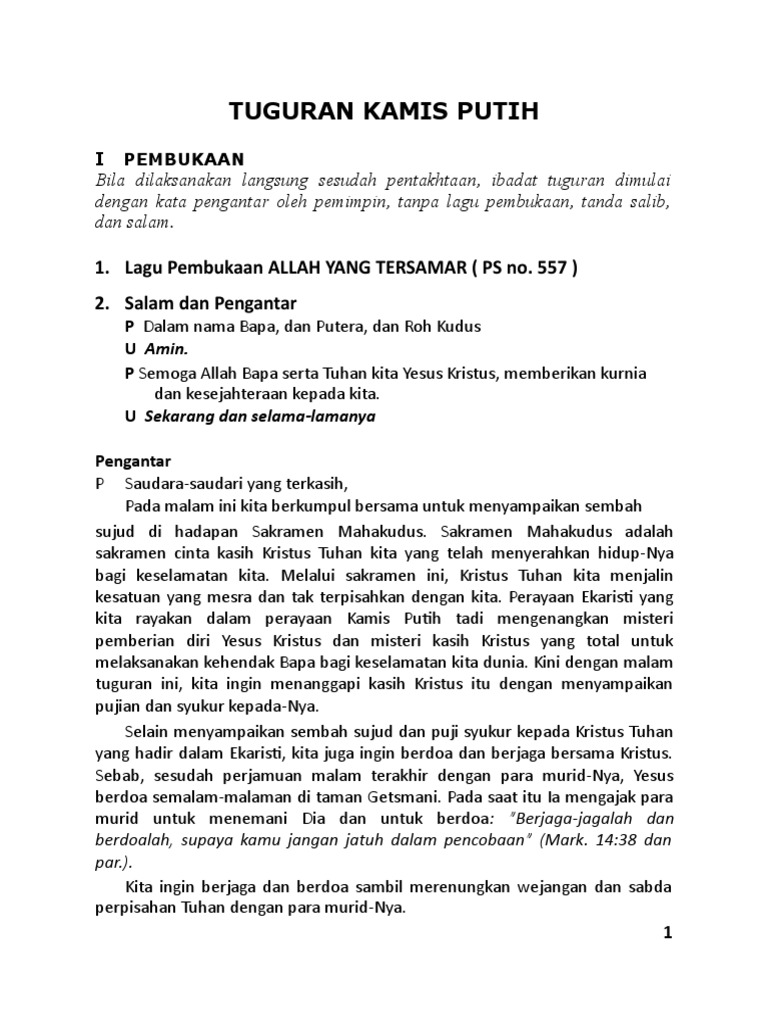 Home » Without Label » Doa Pada Saat Tuguran Kamis Putih - Teks Tuguran Sesudah Kamis Putih Bhs Ind Bookfold Folio - Contoh renungan tuguran kamis putih malam.