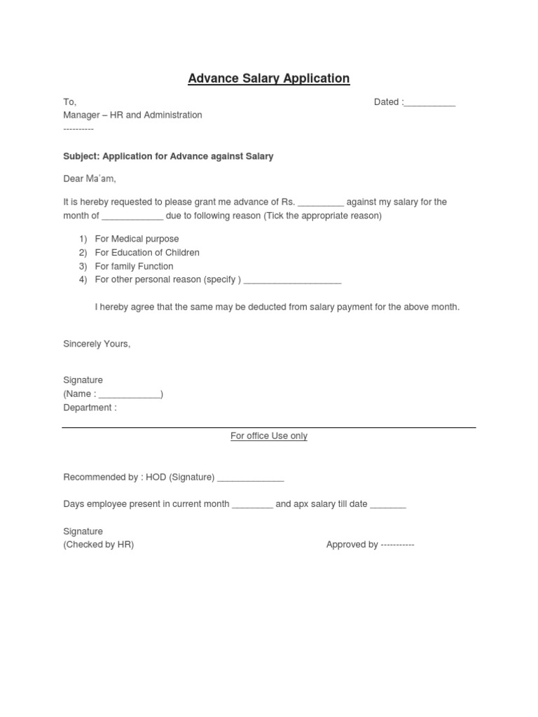 Printable Form For Salary Advance - Application for Advance Salary Request - In these page, we also have variety of images available.